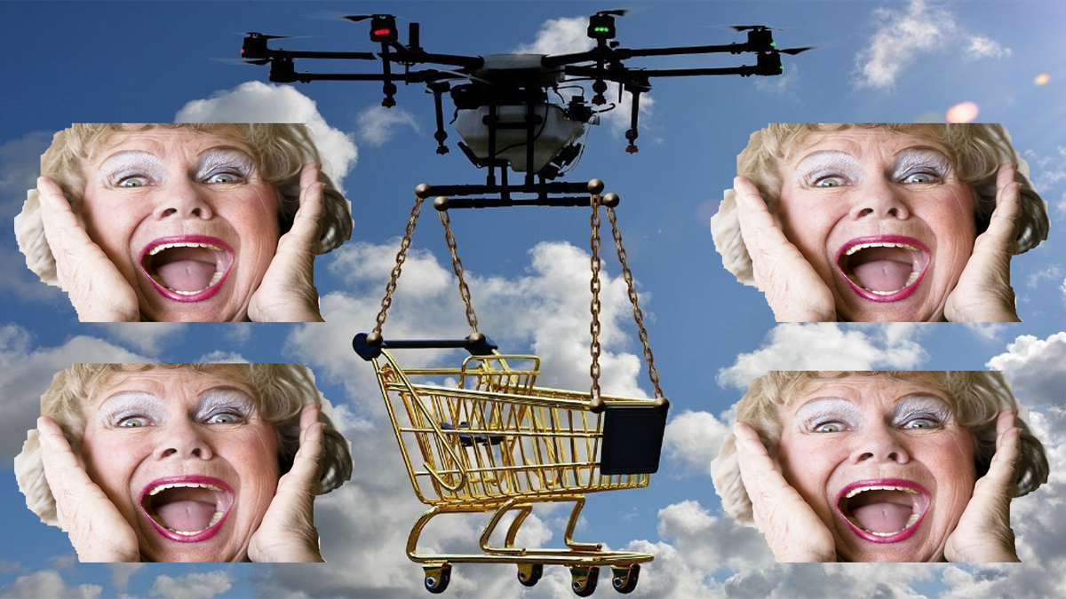 Grandma and grandpa will not take well to this. They regularly publish Google search queries as Facebook status updates and send their adult kids up to four accidental video calls a day that they'll deny having made. They will shit themselves so hard upon first sight of a robot helicopter dropping off a bag of drugs that it'll rocket propel them high enough to whack the thing with a cane before it makes landfall.