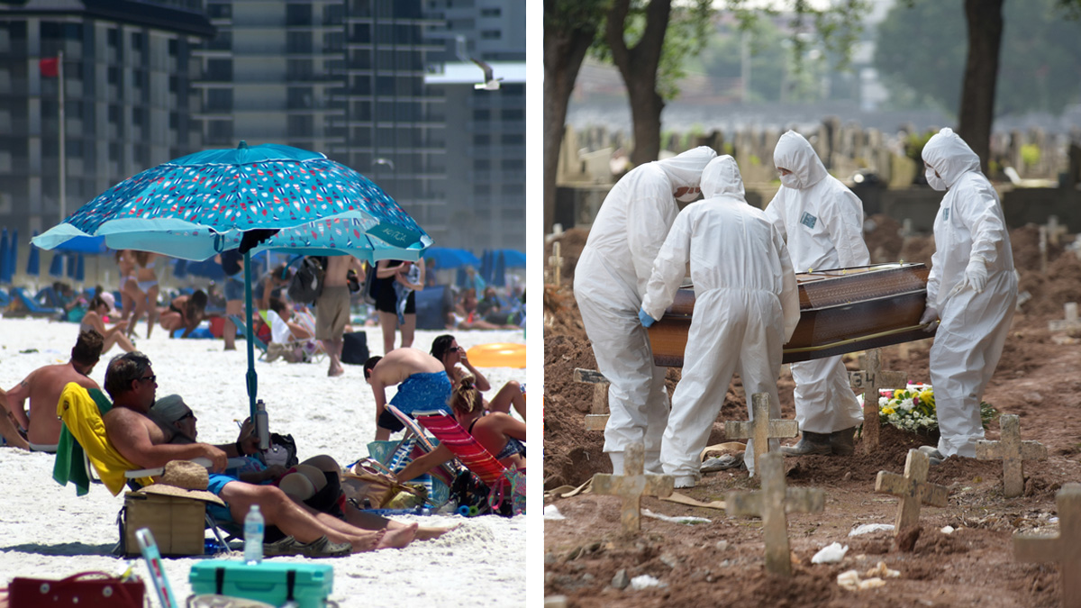 While it might be tempting to think that the country is reopening because we're "beating" COVID, the truth of the matter is that we're not beating COVID at all. In fact, a second wave is emerging. Texas, a state famous for its "Go Topless Jeep Weekend," for example, just reported 2,504 new coronavirus cases, the highest one-day total since the pandemic started. Florida, another state with more beach action and looser government regulations than the entire Jaws franchise, has reported 8,553 new cases, which is the most of any seven-day period.