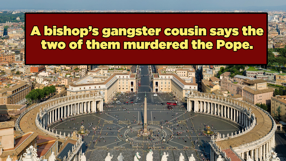 So when Pope John Paul the First died in 1978 just 33 days after being elected, people had good reason to believe someone had gone medieval on his ass. But in these modern times, it couldn't be something so simple as his successor killing him to gain power. No -- he had to have discovered something in those first weeks on the throne, something he refused to keep quiet about, so the greater Vatican decided to replace him with someone who who'd Holy See no evil, holy speak no evil.