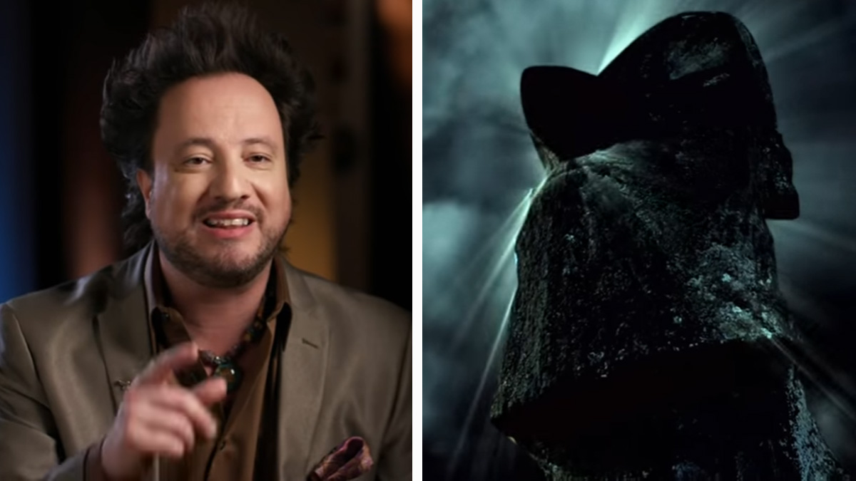 Blame Indiana Jones for making it so exciting to think our past holds clues to something otherworldly. Today, hundreds of articles, listicles and roughly 105% of History Channel content is devoted to asking the question: did them there aliens done did them pyramids? It combines the fun learning of history with the adventurousness of ufology, the saucer-centric conspiracy theories made downright cute by contemporary imbecilities like anti-vaxxers or QAnon. They also give rise to talking heads like the world's most memeable UFOlogist, Giorgio "Mr. Static" Tsoukalos, who can claim that the Moai or Easter Island Heads couldn't have been erected by humans because "wooden rollers wouldn't be able to support the weight" and audiences will chuckle like he's a wacky character and not some unstable loner spouting the medieval equivalent of claiming jet fuel can't melt steel beams.