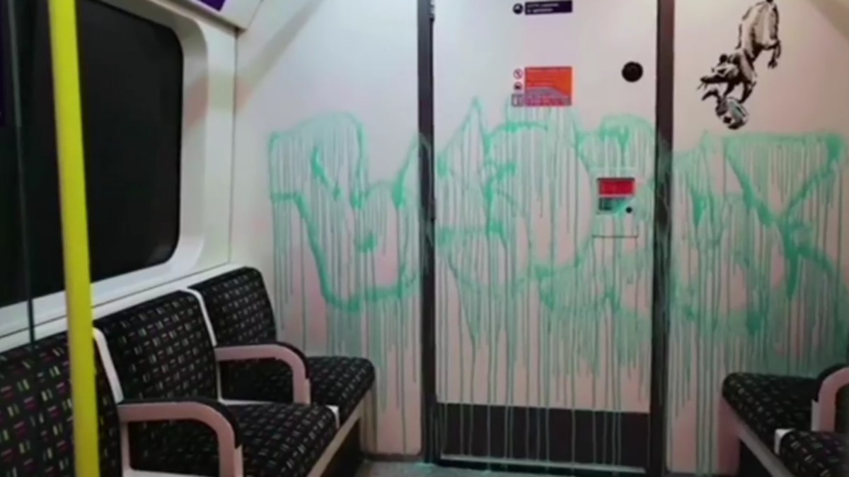 That's presumably why nobody stopped him when he walked right into the London Underground and started spraying shit everywhere. Not literally -- that would be way too artistic. He decorated the walls of the train with images of his trademark rats using face masks as parachutes or becoming comically tangled up in them, confusing (and in at least one case, confronting) passengers who really don't need to deal with this kind of whimsical bullshit on their commute. He also sprayed a wall and set of doors with the phrase "I get lockdown but I get up again," because it wouldn't be a Banksy observation if it didn't come 20 years too late.