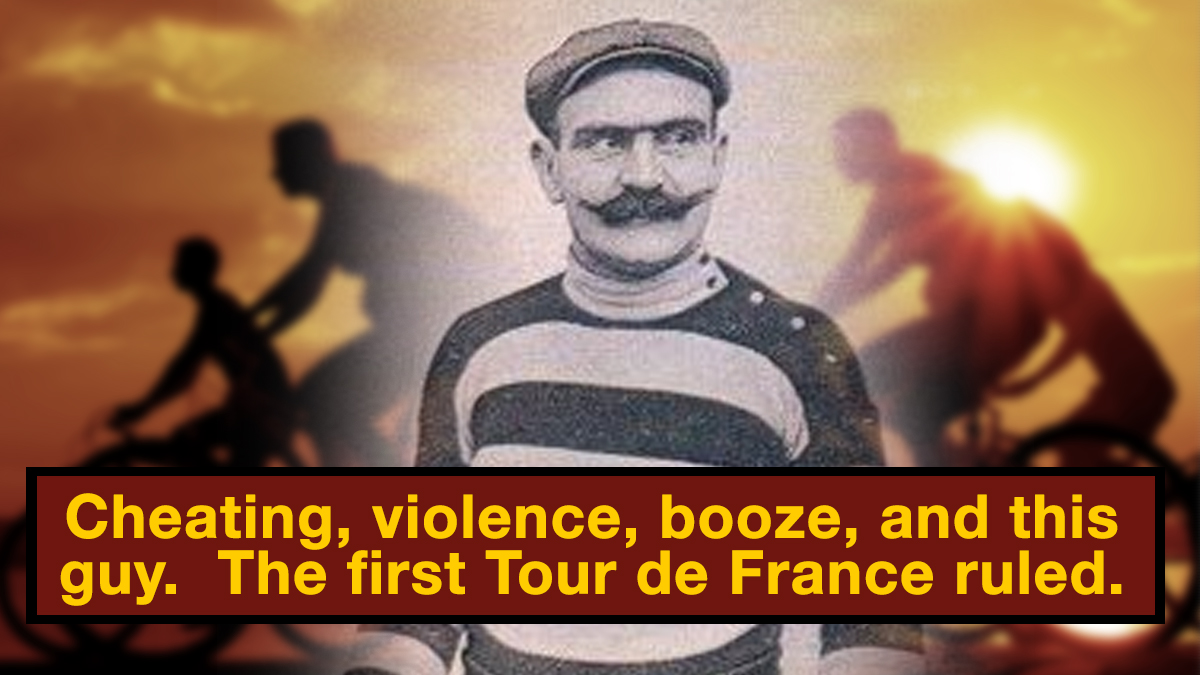 By its second year of existence, the Tour had degenerated into a no-holds-barred cheating contest involving itching powder, poison, broken glass, enraged mob attacks, a nefarious chimney sweep, and a surprising amount of gunplay from the race officials. Let's start with the bejeweled cane fight and work up to the man with the greatest mustache in history battling his way through an entire town using his bike as a shield.
