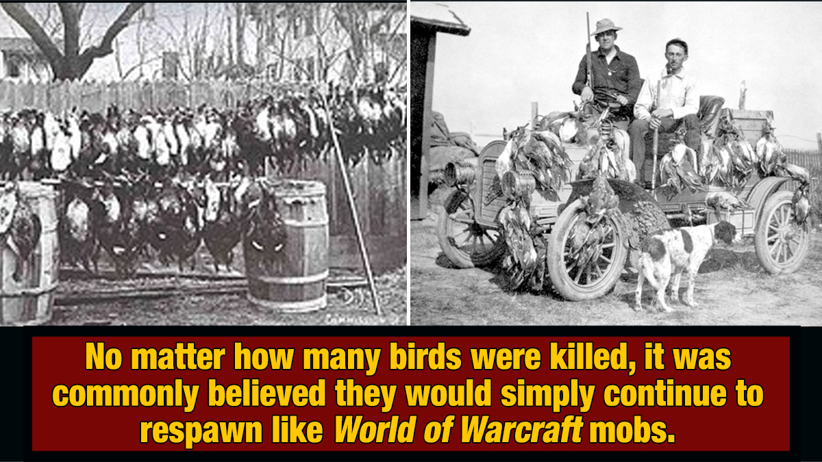 Nature's bounty was once considered inexhaustible. No matter how many birds were killed, it was commonly believed they would simply continue to respawn like World of Warcraft mobs. Nowadays, of course, we know that denying humanity's impact on the environment is a fringe stance held only by prominent politicians, business tycoons, and influential YouTubers, but this ignorance drove numerous species to the precipice of extinction and wiped out the passenger pigeon entirely.