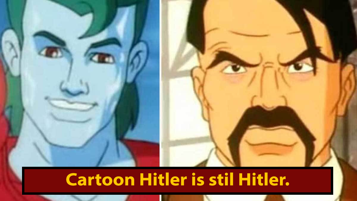 It was quality entertainment as far as kids' educational programming was concerned, and that's in part because Captain Planet was never afraid to dive mullet first into the absurdity of its own premise. But there's one episode of Captain Planet that takes that absurdity and elevates it to an atomic level. I'm talking, of course, about the time Captain Planet fought Hitler. Also, for whatever reason, Hitler has a Fu Manchu mustache.