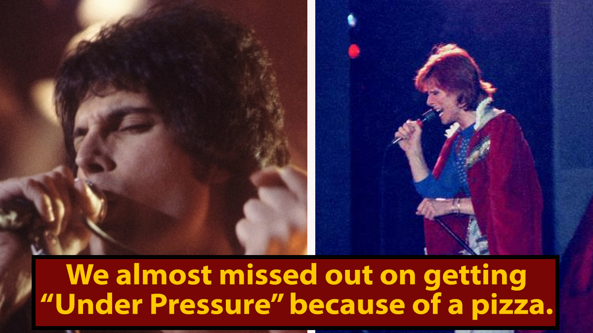 ... and everyone lost their goddamn minds. They decided they needed to write a song right then and there, and ... went out for a pizza instead, during which Deacon forgot the bassline. Luckily, it came back to him, and once they'd laid down an instrumental track, Bowie had a stroke of cocaine-fueled genius. "Okay, hear me out," we like to think he told Mercury. "You go in that booth, I'll go in this one, and we'll just sing whatever comes to mind. It's gonna rule."