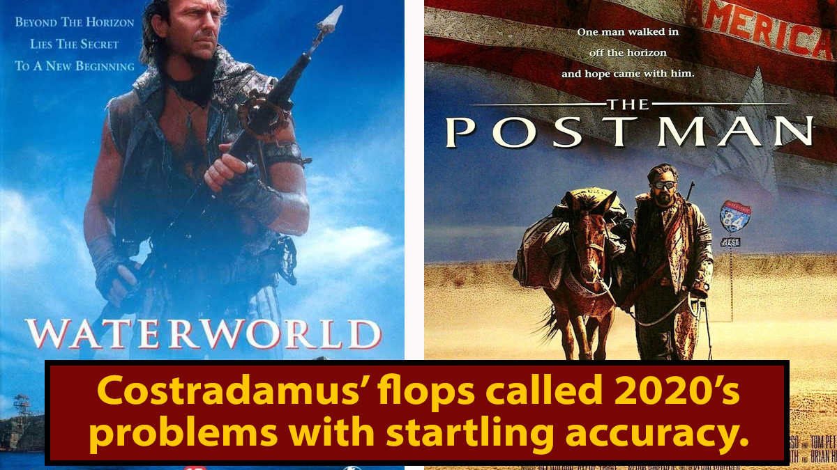 Two years later, Costner directed and starred in his other famous movie turd, The Postman. It told the story of another post-apocalypse (in the future year of ... 2013) and how one dude who dresses like a mail carrier to revive hope in America. Even crazier, the U.S. is in shambles thanks to a deadly plague and the rise of white supremacist militias.