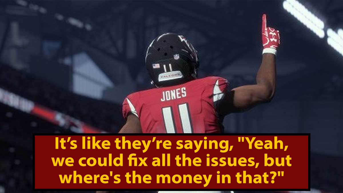 Madden is supposed to be a simulation football game. That's how they market the game. That's why they bought a license from the NFL. They're the only ones who can make a realistic football game using real-world teams. Yet, nothing about the game feels anything like real-life, other than fans being exploited by a monopoly. That they got exactly right.