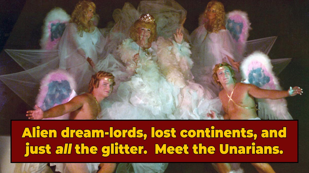 According to Uriel, all problems were the result of unresolved trauma from a previous incarnation, and the best way to resolve that was to coat yourself in body glitter and reenact your past life in an elaborately staged psychodrama, featuring Uriel herself wearing every single Christmas tree light the group could afford. The Unarians eventually started filming these psychodramas and broadcasting them on public access television, in a largely failed attempt to attract new believers (the group never numbered more than a hundred people). They did however, succeed in deeply baffling audiences, who were casually flicking through channels when they suddenly found themselves watching what appeared to be a porn parody of Close Encounters of the Third Kind.