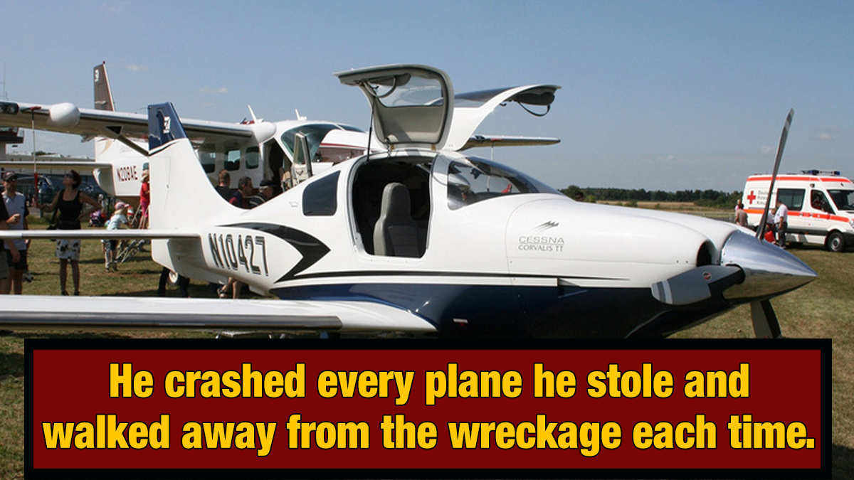 The final time he stole a plane, he had moved from Washington to Indiana, and he flew the Cessna he hot-wired all the way to the Bahamas. He crash-landed it in the water around Great Abaco island. He stole a boat, stole a second more discrete boat, and made his way to a resort. A guard spotted him and disabled the boat, so he stole yet another boat and headed back into the water as police gave chase in speedboats of their own. They stopped him by shooting his engine out.