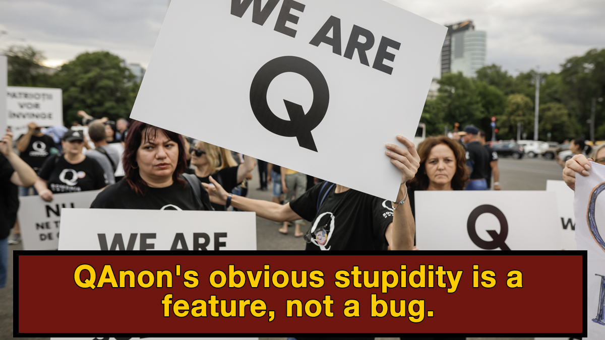 So when creating a conspiracy theory (or a cult or hate group -- they all work the same), the belief system has to be so weird that it offends the sensibilities of outsiders. Have you ever felt your blood boiling when confronting a flat earther? Your rage was their reward and -- this is key -- increasing the collective rage toward their movement only boosts its power. This is why every lasting religion has extensive lore about its past persecution. "They hate us because they know we're right!"