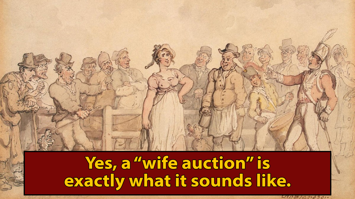 It wasn't exactly legal, but law enforcement didn't care, and back then, a wife was just property, just like a goat or a plot of land. At least 108 documented occurrences occurred between 1837 and 1901, usually with the woman's full cooperation. Even though she was often led around by an actual rope around her neck and her sale was overseen by a real auctioneer and everything, these were nothing like the slave auctions they might have looked like ...