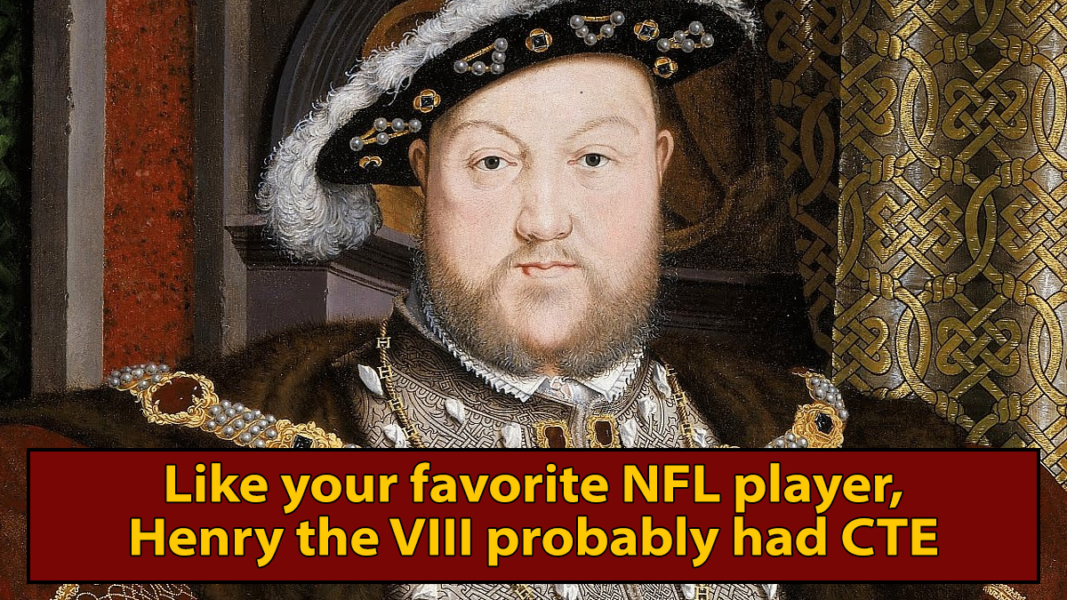 The topic of brain injury in sports is a hotly debated issue. Is the reality that pro football players experience concussions to the effect of being in several major car crashes the reason they say "give a 110%" seven times during the same post-game interview? Yes, absolutely, and naysayers who claim this is a modern invention by our snowflake culture need only look at the dramatic shift in the intelligence of history's most famous athlete: His Royal Highness Henry VIII, King of England.
