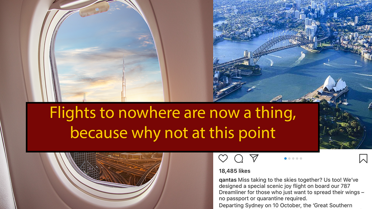 "So many of our frequent fliers are used to being on a plane every other week and have been telling us they miss the experience of flying as much as the destinations themselves," chief executive of Qantas Airlines, Alan Joyce, said in a statement. The exec is far from alone -- according to The New York Times, travel agents in countries including India, Australia, and even here in the good 'ol U S of A have fielded requests for these pointless trips, as it becomes clear that air travel may not return in all its glory for a long, long time.