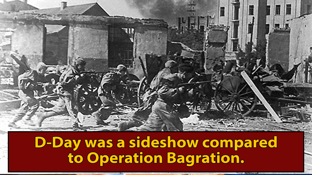 The Eastern Front's ridiculous scale made the west look like everyone was playing with Tinkertoys, and one of the most massive and most brutal struggles in human history came to a head on June 23, 1944, with Operation Bagration. An assault focused on what is now Belarus, the Soviets somehow managed to disguise the intent of about 2.4 million soldiers and convince the Nazis their target was Ukraine until it was far too late to respond.