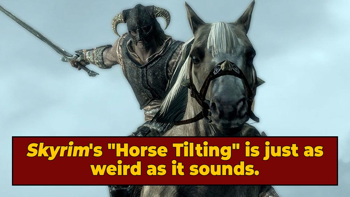 Welcome to the world of "horse tilting." In the world of Skyrim, combining a few strategic saves with torturing your poor horse by getting it to sink into the terrain will grant players ultra speed and even flight capabilities.
