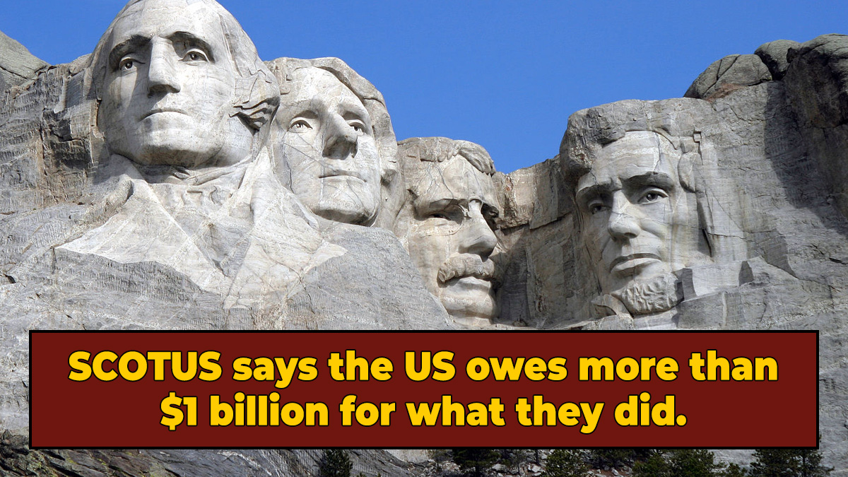 So, is this just one more land grab of many, settled ancient history? Not really. True to their name, the Sioux decided to sue, and they made it all the way to the Supreme Court in 1980. Against all expectations of how these sorts of things go, the court ruled in the tribe's favor. Yes, the U.S. had taken Mount Rushmore's land illegally. And so, they now owed the Sioux $100 million.