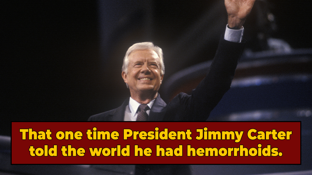 Carter, who had suffered from hemorrhoids since he was in college (haven't we all!) had an attack and found himself bedridden, canceling all of his presidential duties (at least as many as he could) as he and his doctors waited to see if surgery would be required to resolve the issue. Although after a few days of rest, examinations, and pain medication, the president's condition began to improve, the world almost never had the opportunity to hear about President Carter as the, erm, butt of the joke.