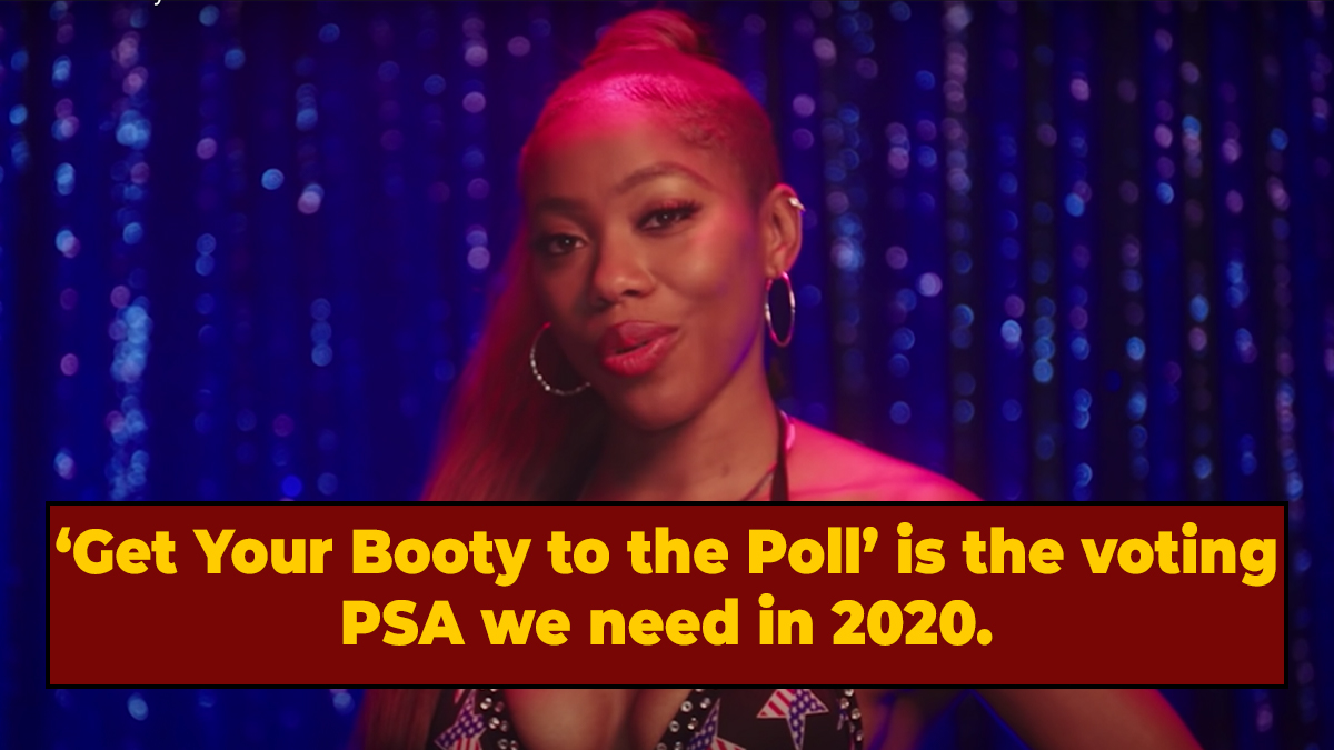 Want to know what Malone and other dancers are super into this year? Making it rain -- ballots. Last month, Atlanta-based director Angela Barnes teamed up with a group of exotic dancers to launch a new campaign ingenuously called "Get Your Booty To The Poll," encouraging viewers to cast their vote in this year's national and local elections. Throughout the provocative one minute and 30-second video, Malone and some other dancers don red, white, and blue bikinis, twirling and flipping around a pole, all while explaining the importance of down-ballot races.