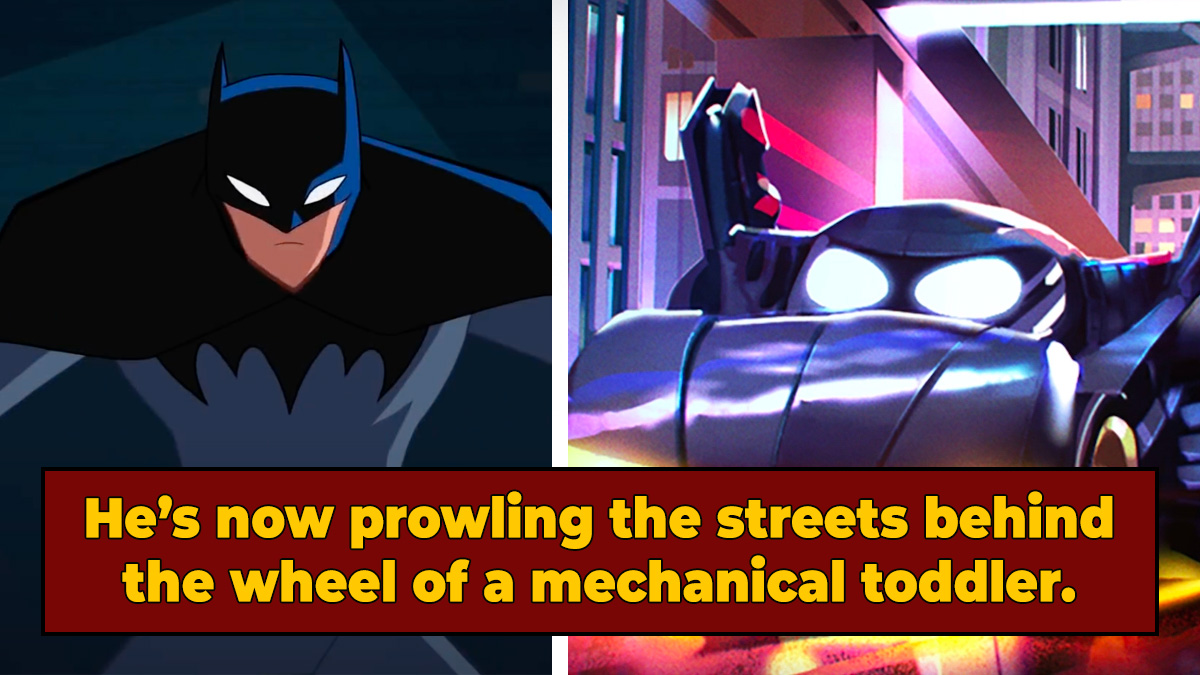 Okay, putting aside the fact that this is obviously a glorified toy commercial, it's pretty messed up that Batman is straight-up playing God now. Bruce Wayne draws the line at using guns, but has no misgivings about bestowing consciousness unto his goddamn truck? If that wasn't enough of an ethical minefield, they're also intellectual infants stuck living in a friggin' cave. We'll have to see how the show itself shakes out, but it's hard to imagine anyone rooting for a billionaire prowling the streets at night from behind the wheel of a mechanical toddler.