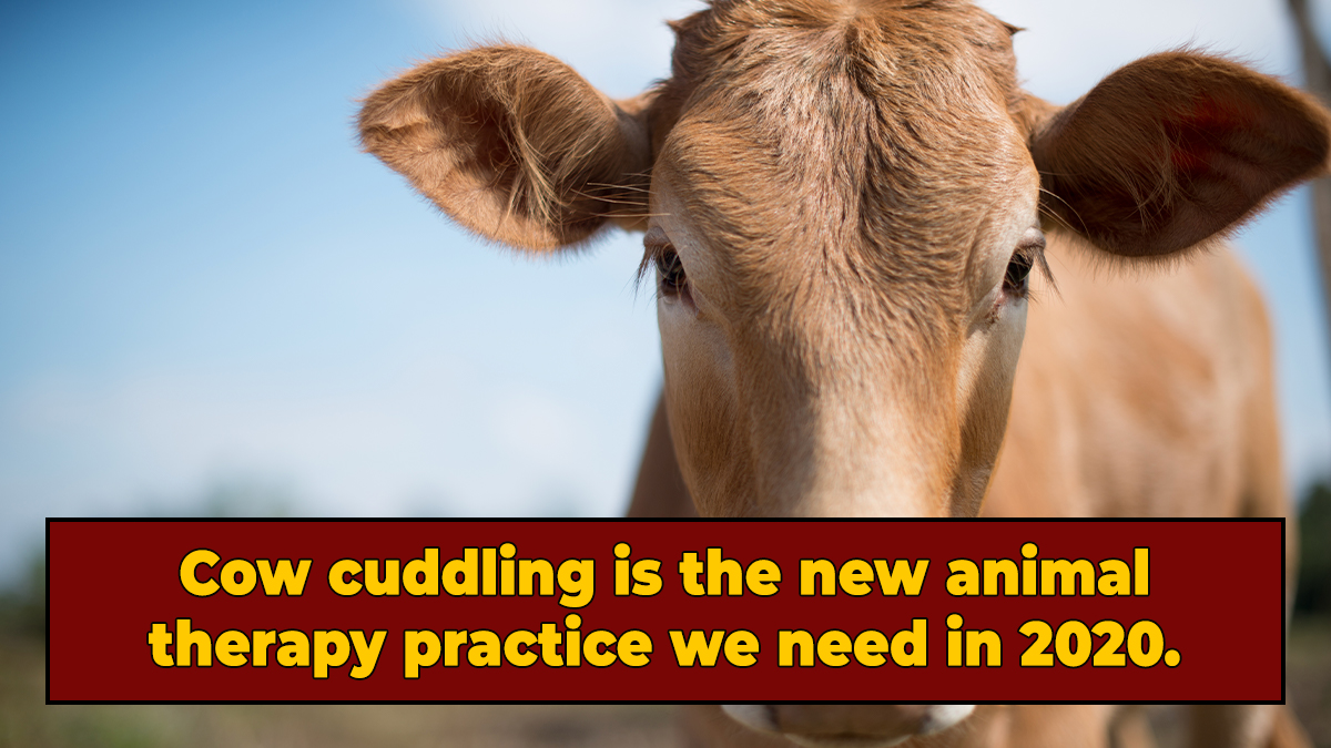 "Cow cuddling is believed to promote positivity and reduce stress by boosting oxytocin in humans, the hormone released in social bonding," the British outlet reported. "The calming effects of curling up with a pet or emotional support animal, it seems, are accentuated when cuddling with larger mammals." Sounds like Doja Cat may have been onto something all along when she rapped about how great cows were in her hit 2018 single, "Mooo!"
