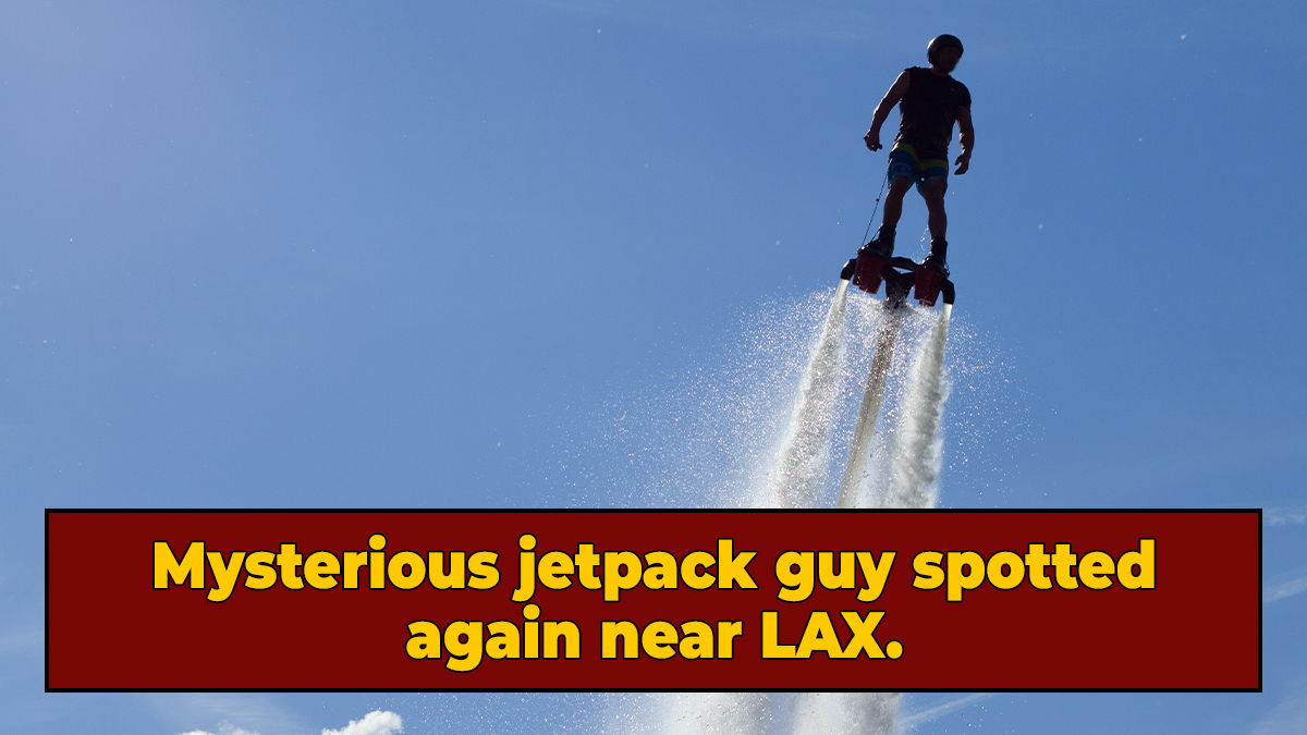 The mysterious LAX jetpack dude is back -- and jet-packier than ever. On Wednesday afternoon, crew members on a China Airlines flight about seven miles northwest of Los Angeles International Airport reported seeing a man soaring approximately 6,000 feet in the air on what appeared to be a jetpack, according to the Federal Aviation Administration.