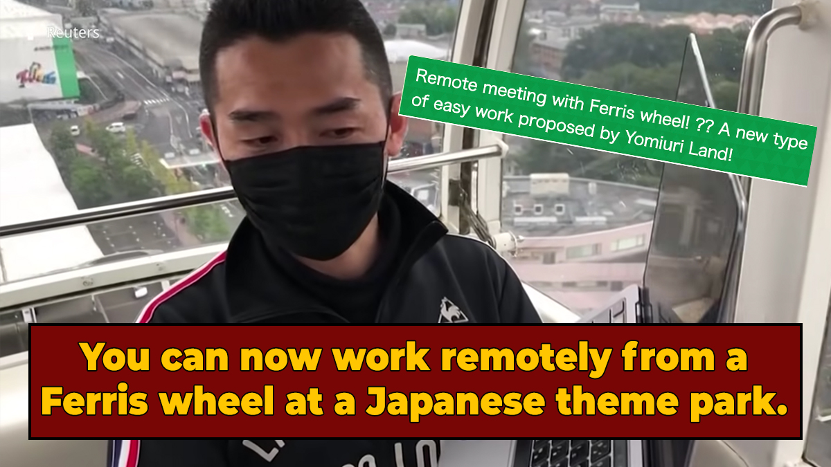 Have you ever wished that your WFH set-up consistently rotated on a giant wheel, reaching heights up to approximately 201.44 feet in the air? Well, Japan's Yomiuriland amusement park has just the solution for you, an offer they're dubbing a "workcation" for remote employees who cannot stand another day of getting out of bed and walking approximately 10 feet to their home office. With workday passes starting at just 1,900 yen (the equivalent of approximately $18.02 USD), workers get admission to the park and access to several other attractions and amenities, making working remotely during a global pandemic feel ever so slightly less dystopian.