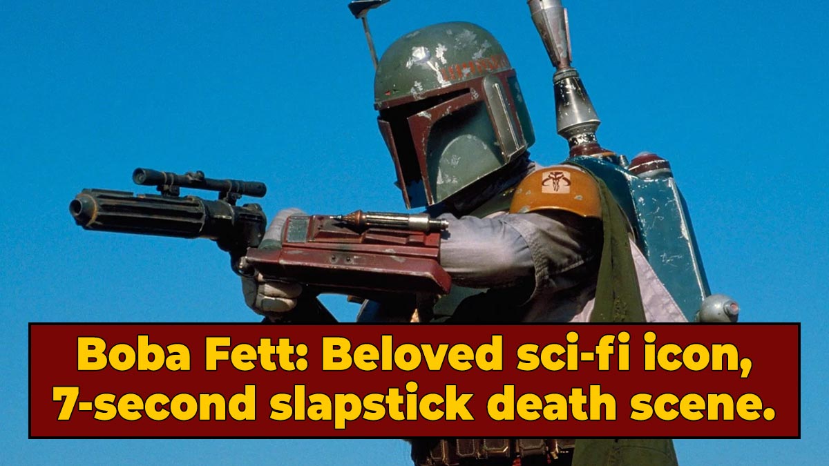 We're starting off with one of the worst. Sure, it's probably been retconned to shit in the 60 million pieces of Star Wars fiction since it first occurred, but Boba Fett's original ending was wholly unsatisfying. In one of cinema's worst cases of cool guy dies like a corncob, Han Solo accidentally bumps into Boba's jetpack and sends him into the desert's butthole.
