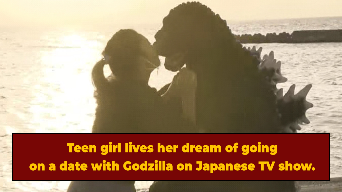 On today's episode of absurd stories with even more absurd headlines, a teenage girl from Japan has taken dating bad boys to a whole new level, going on a romantic outing with the world-famous fictional monster, Godzilla (and to think my mom judges me for having a massive crush on the "troubled young man" that is Pete Davidson). 13-year-old Seira Watanabe is a certifiable Godzilla superfan, complete with an expansive collection of figurines and an impressive roar. Yet, she found herself wanting to her take her admiration for the iconic building-destroying monster to the next level.