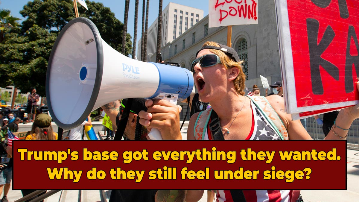 They still want Trump to win again, but it's unclear what they think that would accomplish, beyond making everyone else as miserable as they are. At a time when Republicans control all three branches of government, America is apparently still an empire in irreversible decline thanks to cabals of secret Marxists, evil media elites, the general existence of LGBT people, and any other far-right bugaboos you care to name. Hell, within months of Trump's election they were worrying that the famously liberal CIA was conspiring against him. Like the President himself, they got everything they thought they ever wanted but still think they're under siege.