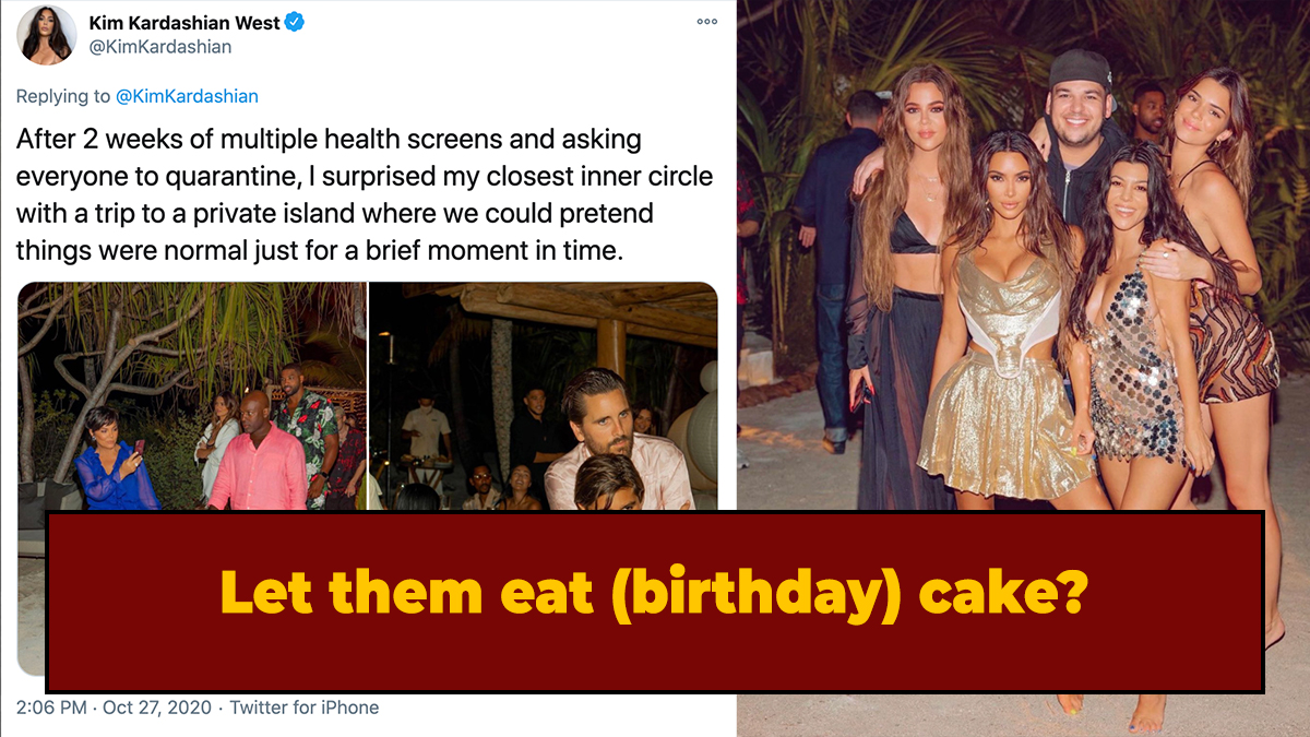 Well, reader, it looks like Kourtney may need to swoop in with her infinite wisdom once again after Kim's most recent Twitter post, recounting her exclusive private island 40th birth party as the Covid-19 pandemic reaches yet another peak in the United States.