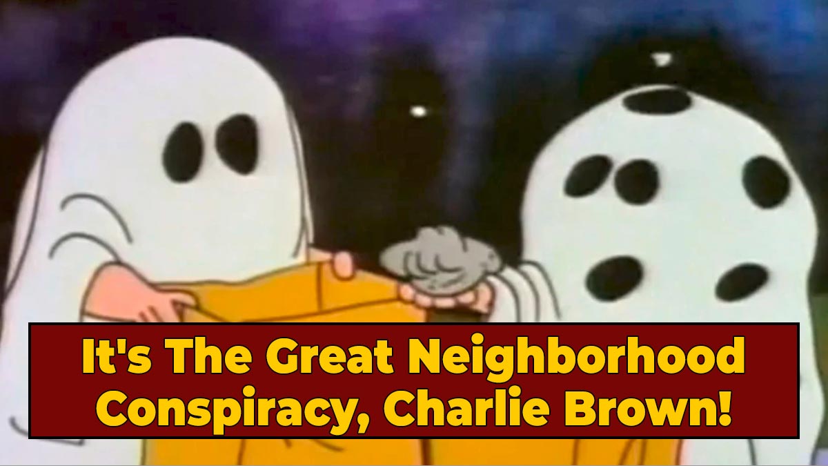 First of all, this nonsense was premeditated. This was a deliberate conspiracy where the execution only works if every adult in town is in on it. There would be no other way to pull this off. If you look at how the evening progresses, the children sideline after every house to see what kind of haul they pulled in. At each stop, all of Charlie's friends have various treats and goodies while he pulls out a decent-sized rock. There is no coincidence there because that sort of thing doesn't just happen.