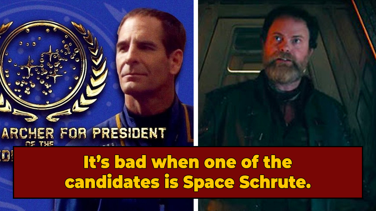 Earlier this week, Star Trek released a campaign ad for Jonathan Archer (Scott Bakula's Captain from Enterprise), who canonically went on to become President. There's also a Presidential race brewing in the Star Trek comic series, with Kirk helping an old friend run against Harry Mudd, the villain from the original series, and, more recently, portrayed by Dwight from The Office in Star Trek Discovery.