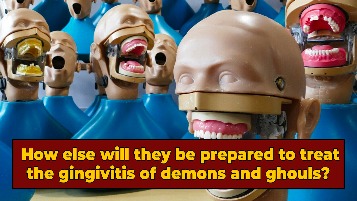 And how else will they be prepared to treat the gingivitis of all kinds of fictional ghouls? No dentist will be caught off guard the day they have a character from Hellraiser sitting in their chair. Or for that matter, RoboCop: