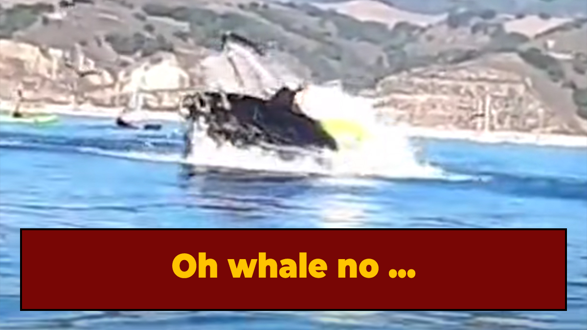 Whale whale whale, what do we have here? Earlier this week, two kayakers had a boating experience of biblical proportions, being engulfed by a humpback whale in San Luis Obispo Bay, California. It started innocently enough, with a sirene Monday morning kayak trip to watch the sea mammals enjoy a silverfish snack. Suddenly, the unthinkable happened. " ... all of a sudden the boat lifted up, and we were dumped in the water very, very quickly," explained Julie McSorley of the incident. Yep, you read that right, a humpback whale came out from underneath them, knocking them from their vessel into the sea below. While both women were unharmed, McSorley said it definitely made her second-guess her relationship with encroaching on natural creatures' space.