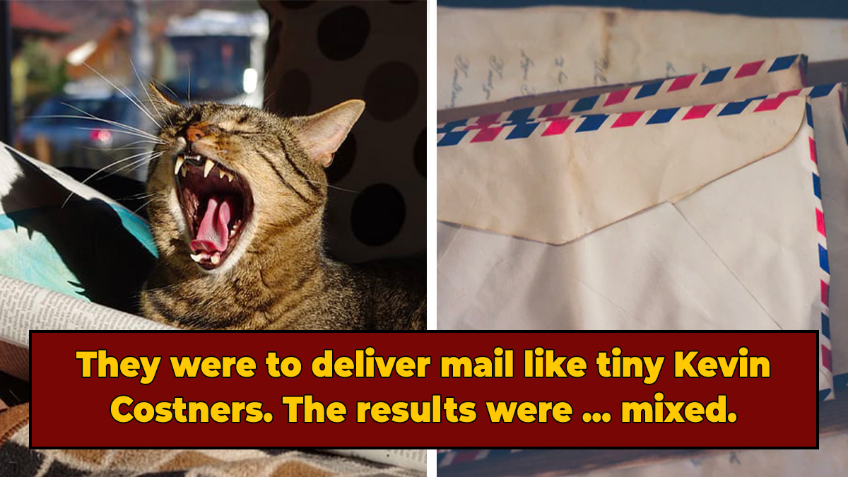 Cats can excel at all kinds of important jobs. They make for great mouse hunters, keyboard warmers (whether you want them to or not), pusher-overs of glasses too close to the table's edge … But of all the other positions in the world, who in their right mind would think that our fickle feline overlords would excel at a job of which the motto is: "Neither snow nor rain nor heat nor gloom of night stays these couriers from the swift completion of their appointed rounds."