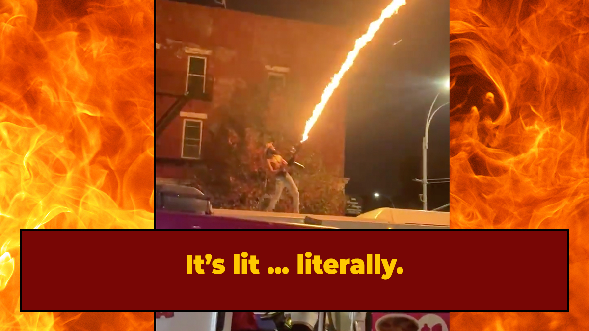 Well, reader, it looks like getting lit has officially been taken to the next fiery, NUMTOT-y level. Around 5:30 p.m. on Sunday, November 8, a Brooklyn man made headlines after jumping from the roof of an ice cream truck onto a full bus, blazing flamethrower in hand, projecting massive streams of orange fire throughout the night sky. Although the 25 uninjured bus passengers were later forced to evacuate the vehicle, the stunt was received generally positively, garnering cheers, applause, and screams.