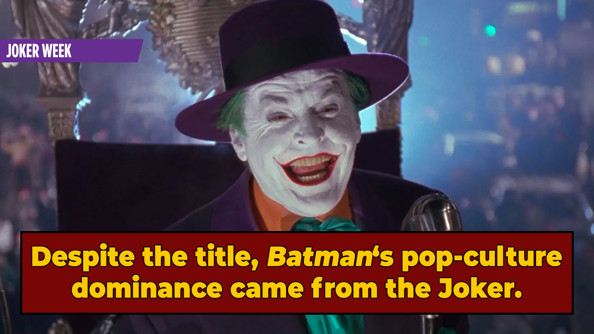 But we're getting way ahead of ourselves (and way, way off-topic). The worldwide dominance of Batman all started with Tim Burton's, well, Batman, a movie that despite the title ultimately belonged to The Joker. While Burton's Bruce Wayne was presented as a furtive, somber nerd, Jack Nicholson got free rein to gleefully chomp away at Anton Furst's Academy Award-winning scenery.