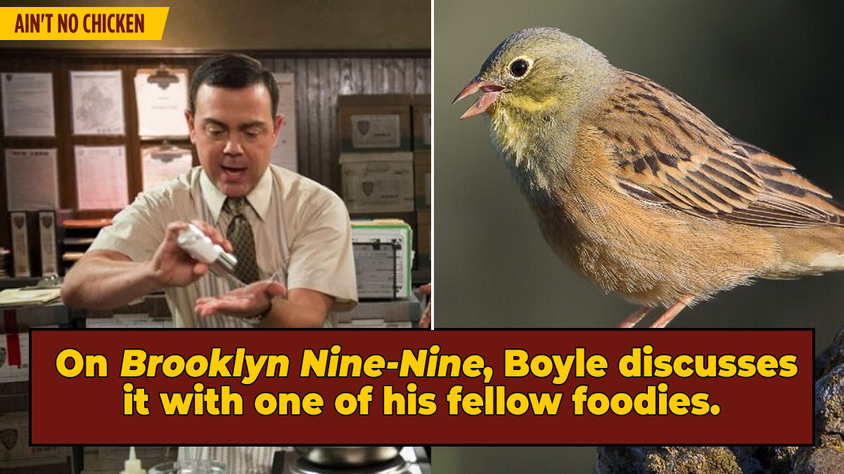 Is it just us, or is TV weirdly obsessed with the ortolan right now? On Brooklyn Nine-Nine, Boyle discusses it with one of his fellow foodies, and rich guys on Billions and Succession have gulped them down as thematically appropriate snacks. If you're somehow unfamiliar with all three of those shows, the ortolan is a small songbird that's considered a French delicacy, but it ain't no chicken.