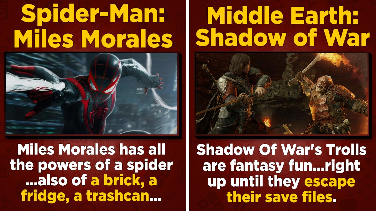 In his playthrough, we learn of Bruz, an Olog-Hai (all the Uruk-Hai were sold-out) troll who prevented Brendan to advance in his quest by glitching out and coming back from the dead to hunt him down. Now, we know this is Lord of the Rings, where stuff comes back to life all the time, and also, the hunting down humans part is like, the only thing trolls do, right? Well, yeah, thing is, now his voice lines were just random Tim Allen grunts, and he was unkillable.