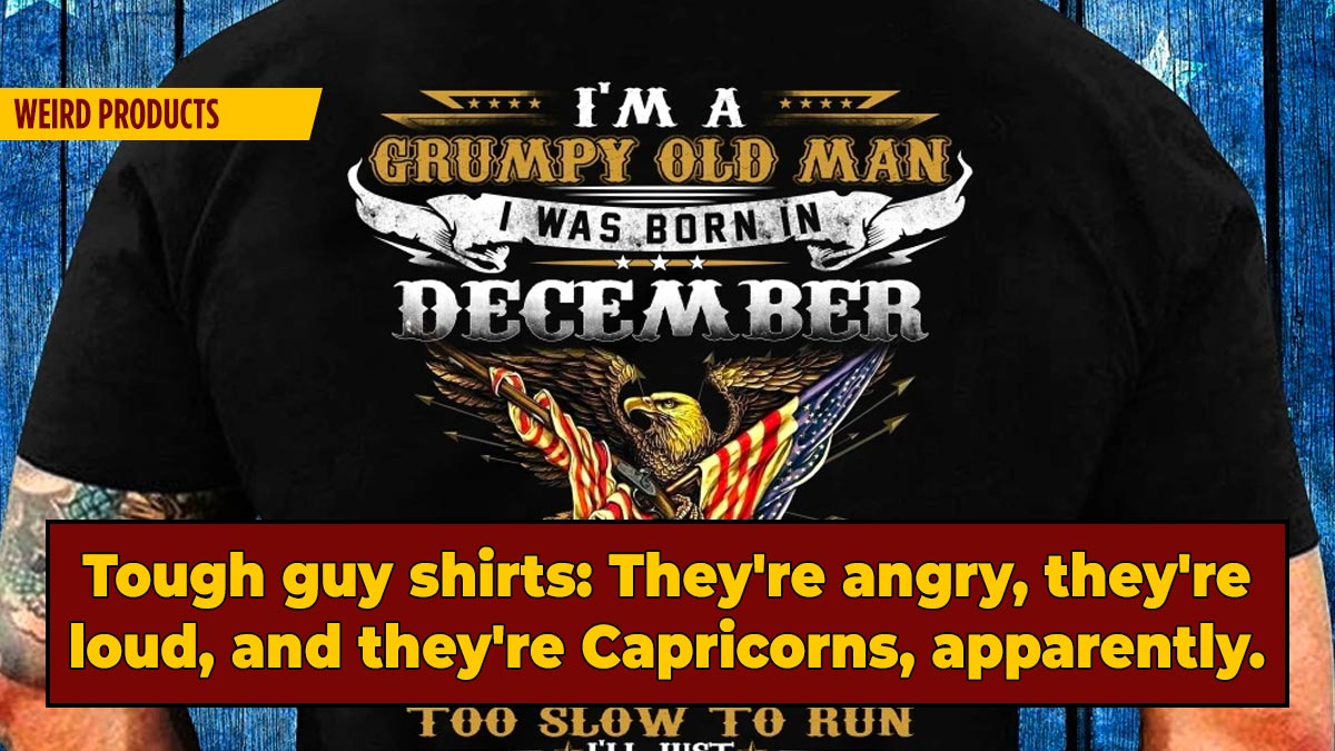 One of my favorites I've come across in a journey through this hell world that both took a toll on me mentally and seemingly wrecked my Google algorithm. There's a subsection of these where they tailor them to your birthday. Because nothing is tougher than a male going around angrily flaunting his ... birthday. It all builds to this perfect self-burn by the end. Listing off the things this dude sucks at before saying he just resorts to gun violence.