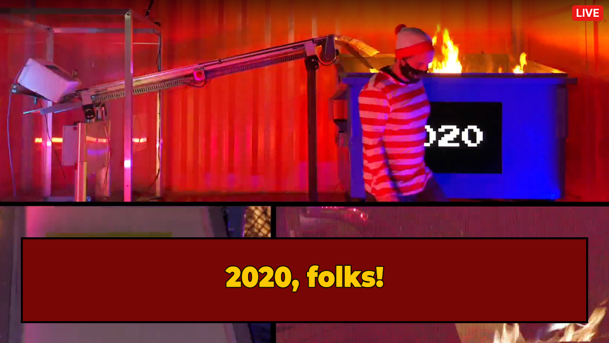 Have you had enough of this damn year? Have you moved well beyond the banana bread, organizing, and sweatpants, phases of quarantine, longing for a new way to express your inner rage as we enter the second wave? Have your neighbors gotten sick of you screaming into the void? (a.k.a. your pillow at 3 a.m.) Do you wish you could just watch the dumpster fire that has been the past 365 days burn from afar ... literally? Well, reader, do I have some good news. You can now email an actual dumpster fire, where your message will be gloriously tossed into a burning trash receptacle emblazoned with "2020" via conveyer belt as the entire process is live-streamed both on Twitch and the organization's HEY Email Research Lab's website.