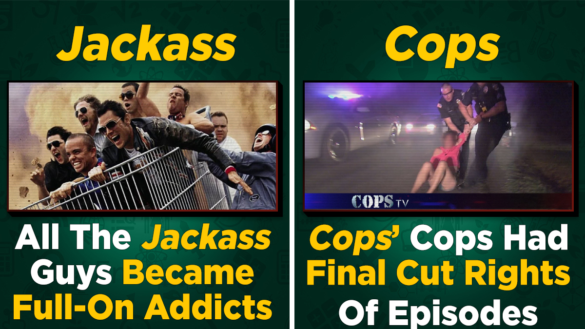 But getting to cherry-pick footage as often as they would pick up women named Cherry didn't just give the police a PR boost and a "helpful recruitment tool." It also allowed them and the show to gaslight the American populace on the state of crime in America. In the fake world created by Cops, there are three times as many drug arrests, four times as many violent crimes arrests, and 10 times as many sex work arrests compared with the "real thing." The show would also systematically give top billing to crimes perpetrated by minorities, with 71% of white arrests tucked away at the end of the episode -- when your Fox News watching grandpa had already fallen asleep on the remote.
