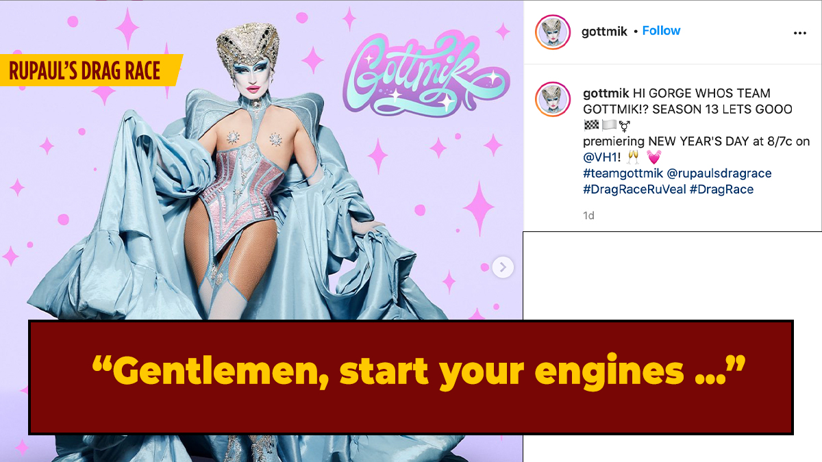 Gentlemen, start your engines! Earlier this week, RuPaul's Drag Race unveiled the cast for its upcoming 13th season, making "herstory" after announcing that Gottmik, the show's first transmasculine contestant, will sashay into the workroom on its January 1 premiere. The second openly transgender contestant to ever compete on the Drag Race mainstage, Gottmik's casting is significant, an important step in securing gender diversity on the wildly-popular TV program.