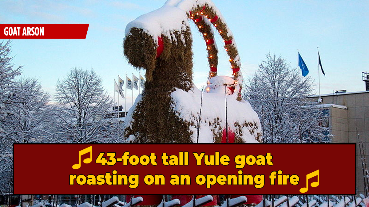 It's even become the subject of conspiracy theories that the burnings are the work of a secret pagan organization who believe the goat must be burnt, as Thor barbecued the goats who pulled his chariot to ensure a good harvest in the coming year. The theory was notably supported by a Cleveland man who was arrested after claiming he was tricked into believing it was an accepted tradition. That guy is an anomaly not just for his weirdo beliefs but also because despite all that security, goat burners are rarely caught, possibly due to some kind of yule goat magic.
