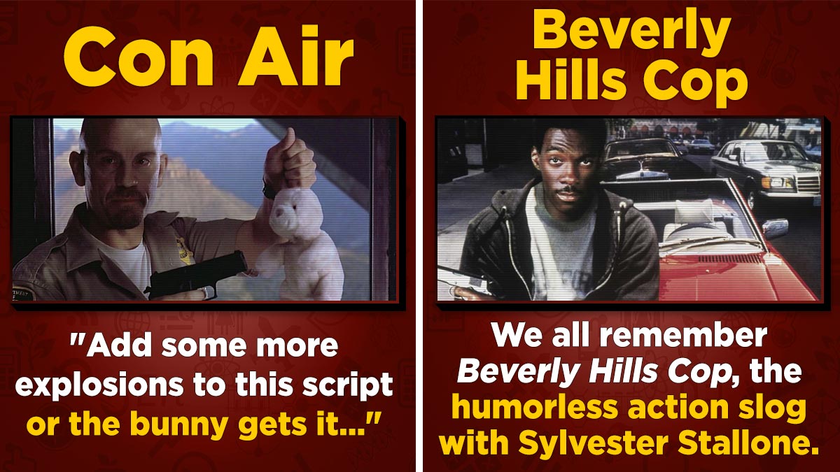 We should consider ourselves blessed that Con Air landed where it did. It's an absolutely horrific piece of fiction that is perfect in just about every conceivable way. Aside from a script that was nothing like the final product, Nic Cage also helped add in some flavor to push things over the top. Specifically, the accent and the bunny were both never mentioned on the original page, just little Cage additions made to spice things up. Throwing both Bruckheimer and Cage at your script is like taking the manuscript to the book you've just spent a decade perfecting to an Arby's for publishing. You might get lucky and find out that the person at the register is also a freelance publisher for Penguin, but you're more likely to leave without any ownership over your work and a shitty sandwich to show for it.