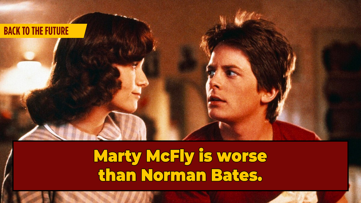 Whatever the case, we know he's the kind of guy who's willing to not only commit sex crimes for any reason (sure, it saved the future, but again, there were infinite other options) but commit them against his own mother. Actual serial killers don't stoop to that level. You heard it here: Marty McFly is worse than Norman Bates.