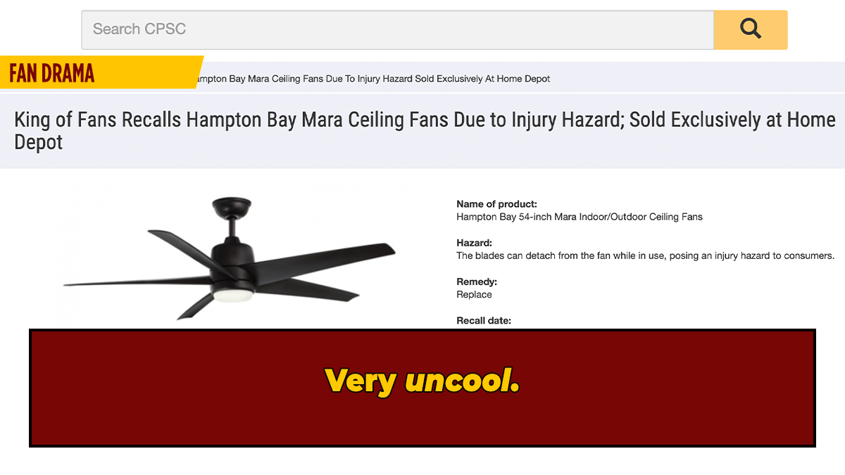 Caused by "an isolated manufacturing defect with the assembly of the fan blade's locking clip to the fan flywheel," according to the company, the fans were sold exclusively at Home Depot, for approximately $150 between April and October. Talk about a bad quarantine purchase ... Anyways, after learning of the defect, the hardware store chose to voluntarily pull the product. "We're committed to the safety and quality of our products," a spokesperson told CNN of the decision.