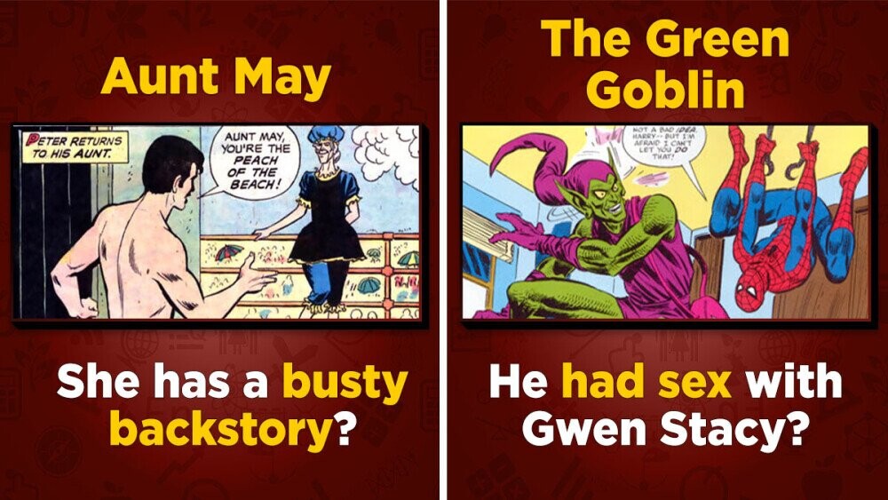 Spider-Man has gotten up to quite a lot in the past 60 years, and we're always discovering new, bonkers comic storylines we've never read before. Apparently, Spider-Man's villains haven't always been doctor octopuses or green goblins, sometimes they've been the very concept of good taste and healthy sensuality itself. We dig into a few storylines way too strange and hot to ever make an appearance in a Disney-branded MCU film (or, also, a Sony movie, presumably).