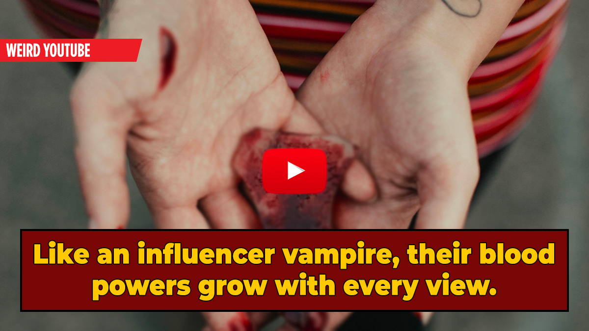 Everything else is left to the whim of the spellcaster. Some wish for self-acceptance. Others wish for a Nintendo Switch. Some bleed only a few drops into a geometric pattern. Others smear half a cup over the page like a hemophiliac toddler during finger painting class. But YouTube remains an integral part of the incantation. Why? Blood Over Intent practitioners believe that their magic achieves peak potency if witnessed by a large crowd. And since uploading videos onto YouTube technically makes everyone in the world with a wi-fi connection part of your bloody coven, their blood powers increase with every view like an influencer vampire.