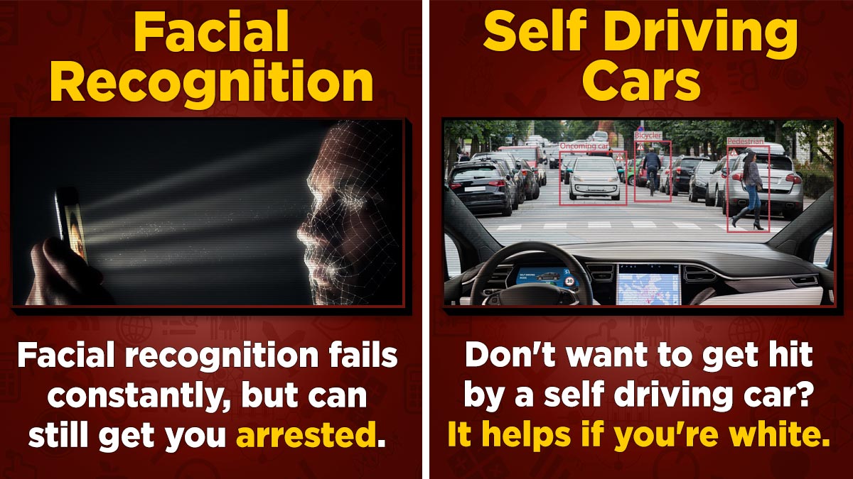 But technology can make life a living nightmare for some less privileged groups, like people of color, as a fair bit of today's AI technology is actually very racially biased. After all, a human had to make that robot or self-driving car, so it's only natural that human biases would wind up in the code, like ...